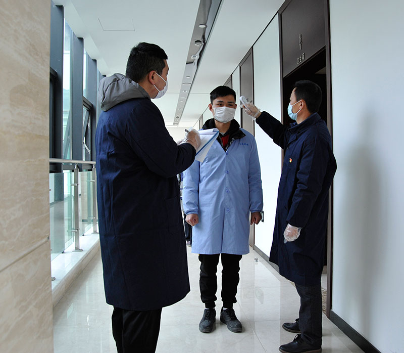 机关党支部充分发挥服务保障基层职能,党员主动担负起为公司和入驻银行员工测量体温、送餐等服务工作,确保防疫和生产两不误。