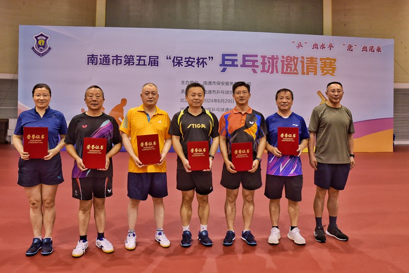 6月29日,南通市第五届“保安杯”乒乓球邀请赛在开沙岛中国乒乓球通州训练基地成功举办。赛事由南通市保安服务有限公司主办,南通市乒协承办。市国资委副主任、二级调研员于海华,市乒协主席侯军,城建集团副总经理董新平,保安公司董事长方俊,市乒协副主席、秘书长张进出席开幕式。