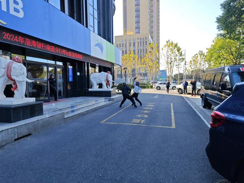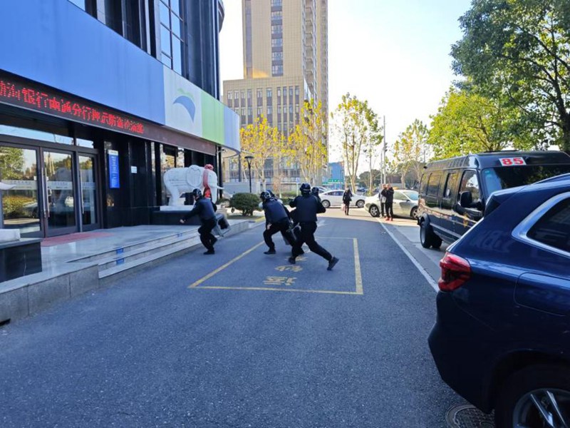 本次演练设置了运钞车网点接送款环节防抢劫项目,包含武装押运送款、接款时发生抢劫两个环节。在确保安全的前提下,押运队员积极参与,动作准确到位,与银行员工配合默契,从实战角度进行演练,达到了预期效果。