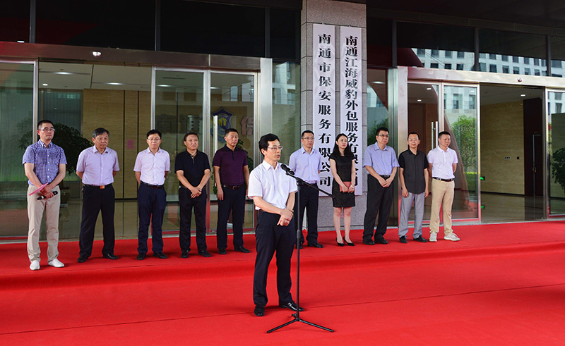 7月28日上午,南通市保安服务有限公司举行“江苏银行南通分行入驻暨保安公司金库启用典礼”。市人民银行工会主任季步高、江苏银行南通分行行长艾晨、城建集团副总经理董新平等领导出席典礼。