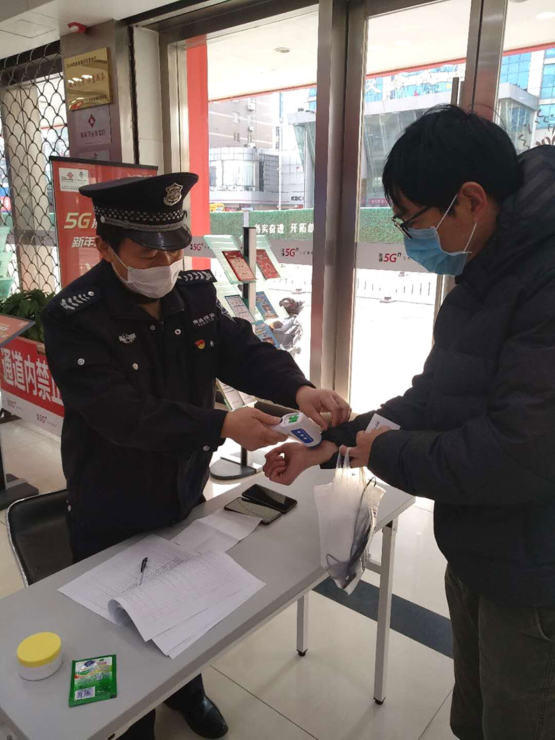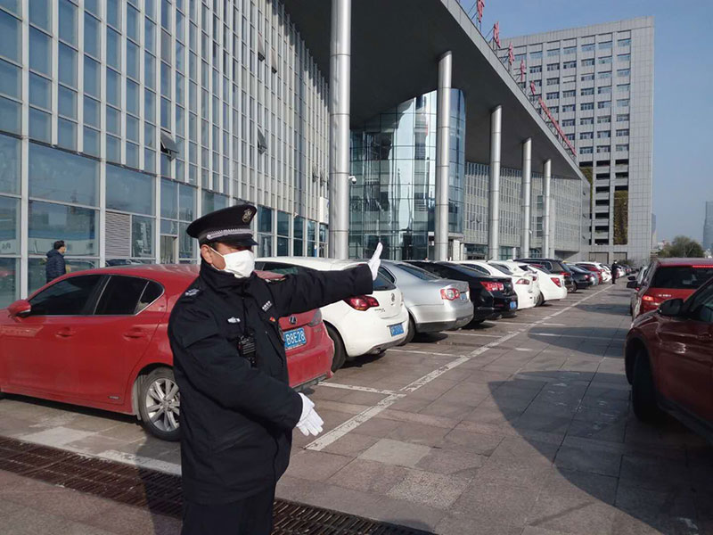 人防党支部党员始终坚守在防控疫情第一线,守好防护大门,全力配合客户单位做好人员进出管控、体温测量、信息登记等工作。