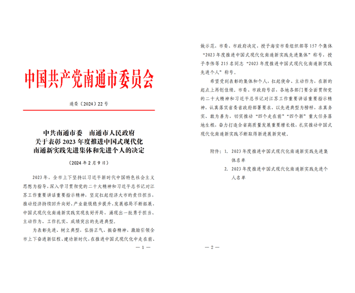 为表彰先进、树立典型,弘扬正气、振奋精神,市委、市政府向全市157个集体和215名同志授予光荣称号。其中,南通保安公司荣获“2023年度推进中国式现代化南通新实践先进集体”称号!