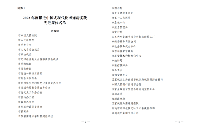 喜报——南通保安公司荣获“2023年度推进中国式现代化南通新实践先进集体”称号