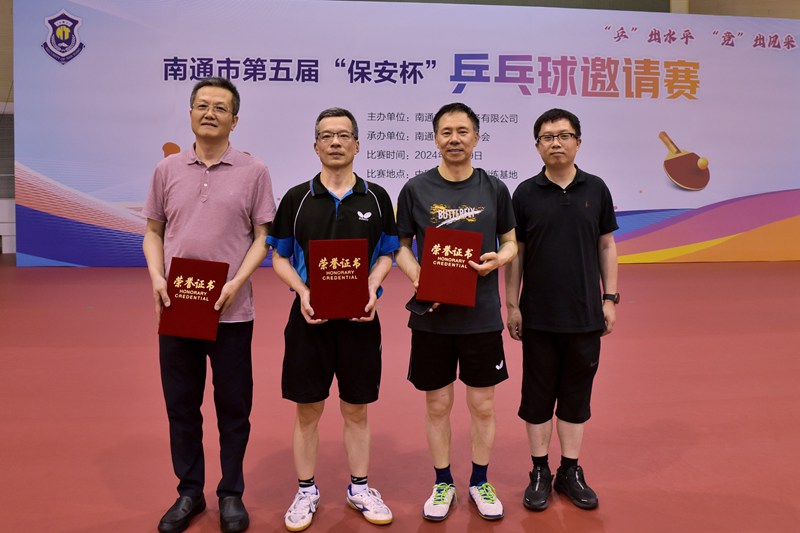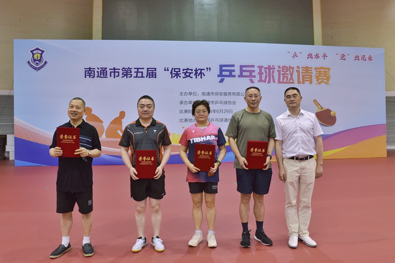 6月29日,南通市第五届“保安杯”乒乓球邀请赛在开沙岛中国乒乓球通州训练基地成功举办。赛事由南通市保安服务有限公司主办,南通市乒协承办。市国资委副主任、二级调研员于海华,市乒协主席侯军,城建集团副总经理董新平,保安公司董事长方俊,市乒协副主席、秘书长张进出席开幕式。