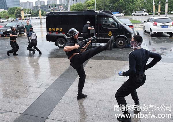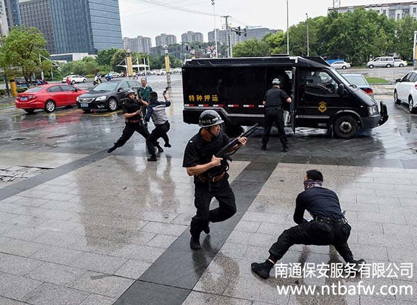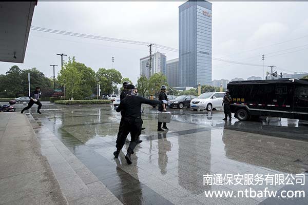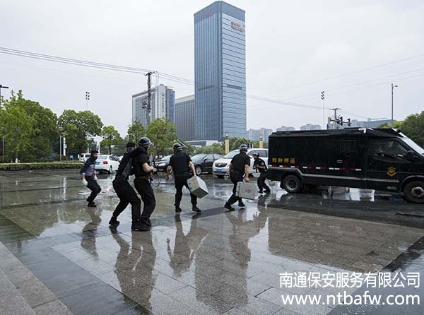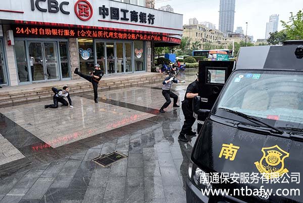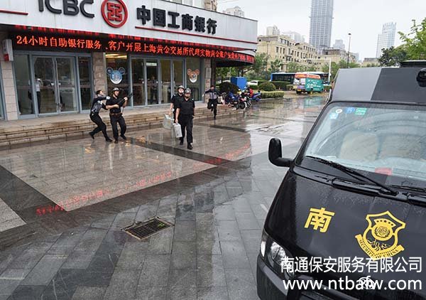 6月24日下午15:30,南通市保安服务有限公司押运分公司在工商银行开6月24日下午15:30,南通市保安服务有限公司押运分公司在工商银行开发区星湖支行进行押运突发事件应急处置演练。南通城建集团副董事长姚晓明,工行内控合规部(安全保卫)总经理王大勇、副总经理茅建平等领导在公司领导的陪同下到现场观摩。