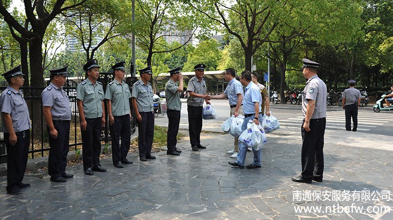 连日来,高温持续。对于坚守在一线岗位的保安队员,牵动着公司领导的心。7月25日,公司总经理方俊、总经理助理袁杰、工会副主席陆益辉慰问了行政中心、华能电厂、默克公司等驻点保安队员,送上防暑降温用品,并仔细询问队员的作息时间和工作情况,嘱咐队员做好防暑降温工作。